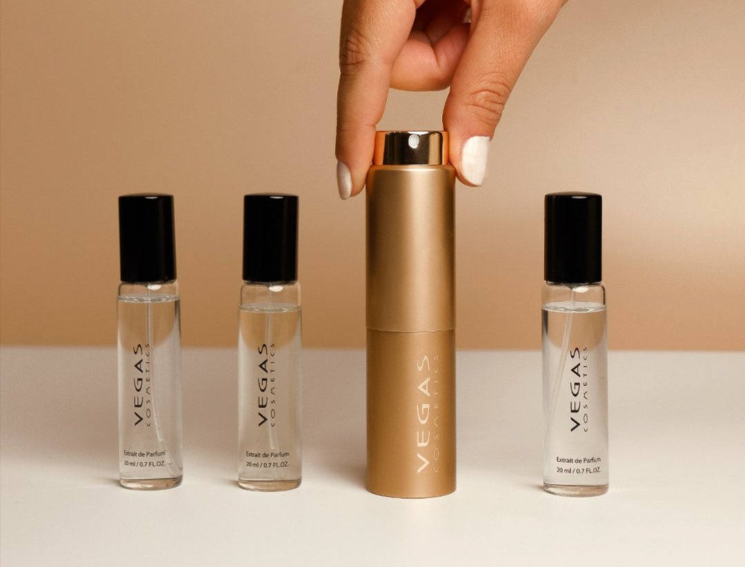 Vegas Twist Gold Pack (Ref. 199) est un concept portable, innovant et polyvalent. Il se compose d'un spray « Parfum Case ». Et pour une recharge d'Extrait de Parfum concentré à 25% de l'essence.